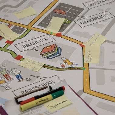 Om daar alvast op in te spelen (en om iedereen enthousiast te krijgen!) hebben we een illustrator gevraagd een plattegrond te tekenen. Deze hebben we op A0 formaat afgedrukt. Ook hebben we een filmpje gemaakt dat het probleem duidelijk neerzet.