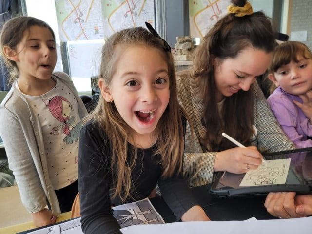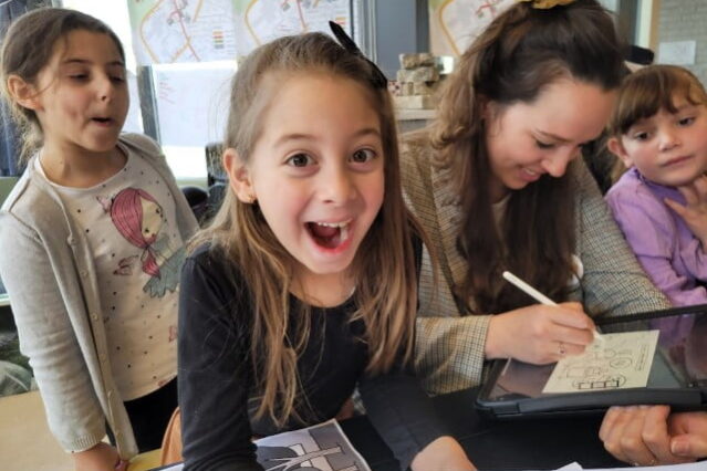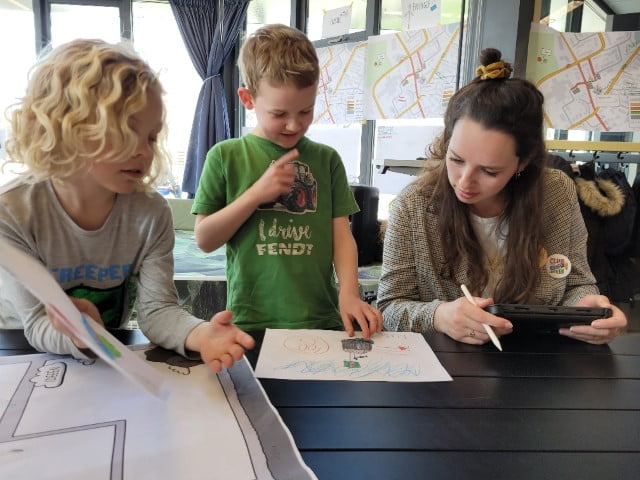 De kinderen hebben de kans gekregen om met Julia samen een tekening te maken. De ontwerpteams hadden dat erg goed voorbereid, door bijvoorbeeld eerst zelf al een schets te maken. Of door te laten zien hoe een robot moest kijken. Hieronder een impressie.